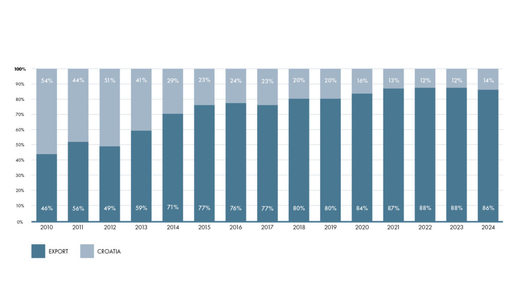 Cromaris d.d. je jedna od najbrže rastućih kompanija u industriji. Od osnutka 2009. godine do danas svake godine bilježimo snažan organski rast prodaje naših proizvoda.